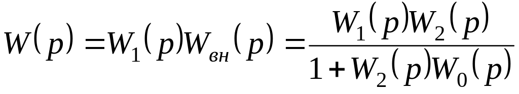 2) Если представить внутренний контур как отдельное звено, то вся система представляется как последовательная система, состоящая из двух звеньев. Тогда её передаточная функция находится следующим образом: