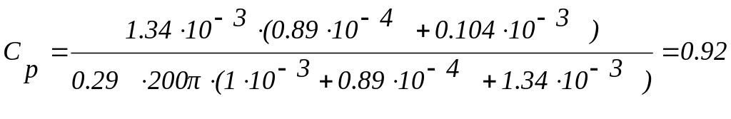 , где Yн=Yд+Yвх=1.34 мСм, Yk=0.104 мСм, Yi=0.089 мСм, ωн=200π