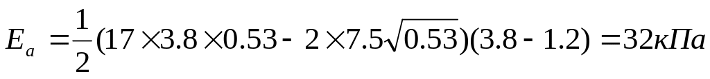 Для определения равнодействующей активного давления грунта Ea c использованием формулы (3.8) необходимо предварительно вычислить и для слоя суглинка: