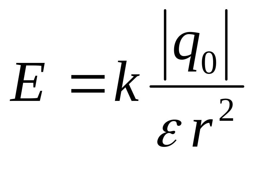 Е – модуль напряжённости поля точечного заряда q0 в данной точке пространства; k – коэффициент пропорциональности; |q0| – модуль точечного заряда, создающего поле; – диэлектрическая проницаемость среды; r – расстояние от точечного заряда до данной точки пространства. |