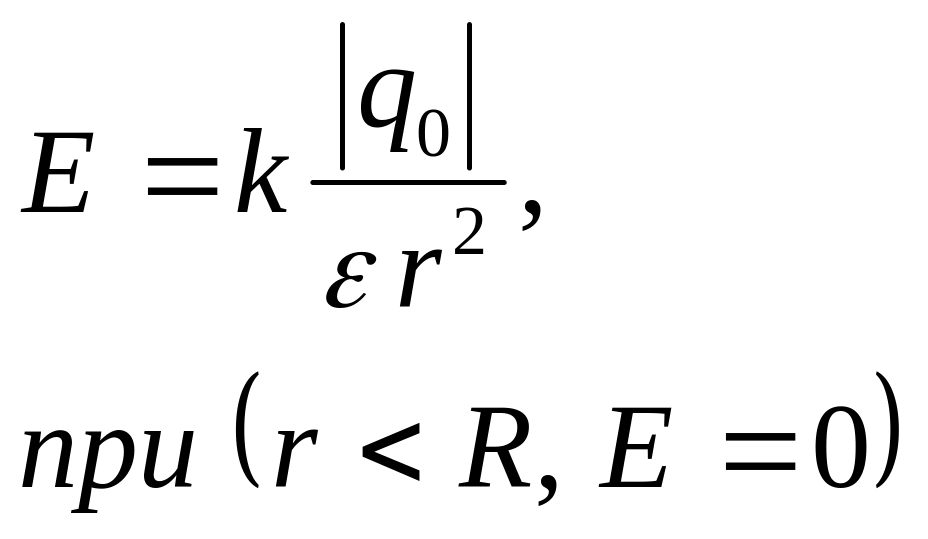 q0 – модуль заряда, равномерно распределённого по поверхности шара; – диэлектрическая проницаемость среды; r – расстояние от центра шара до данной точки поля; R – радиус шара |