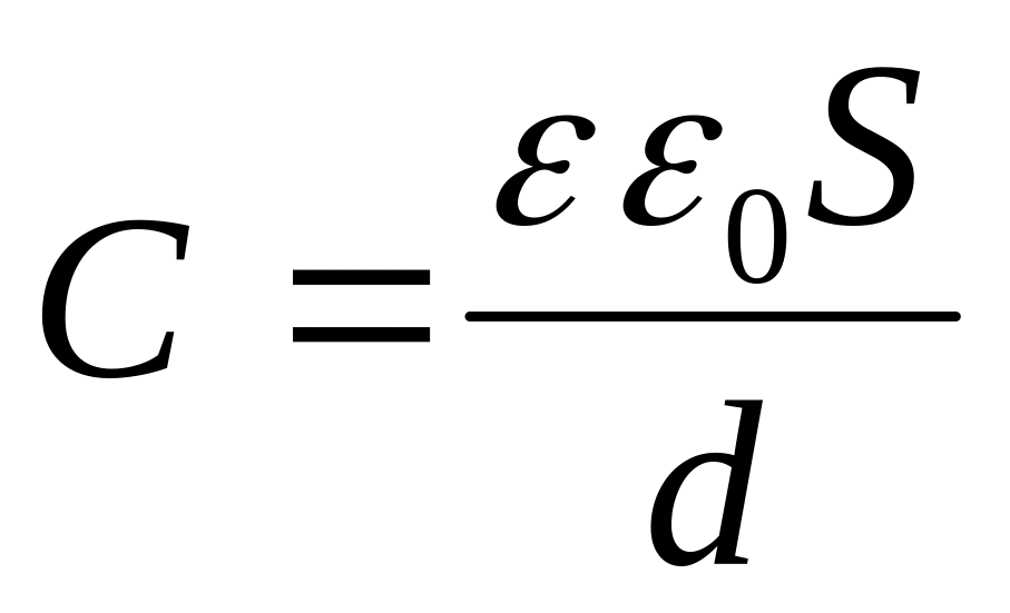 С – электроемкость плоского конденсатора; – диэлектрическая проницаемость диэлектрика; – электрическая постоянная; S – активная площадь одной из пластин; d – толщина диэлектрика. |