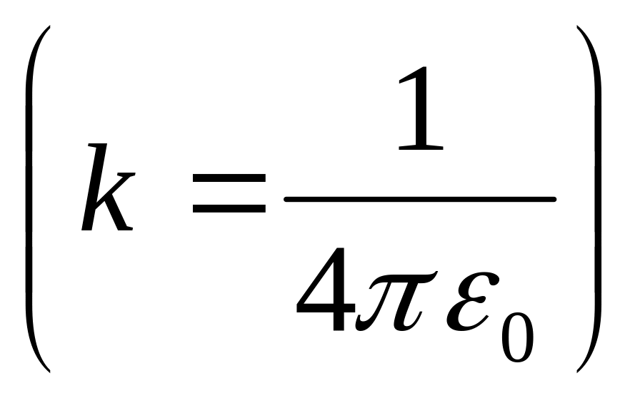 F – модуль силы взаимодействия точечных зарядов; k – коэффициент пропорциональности в законе Кулона