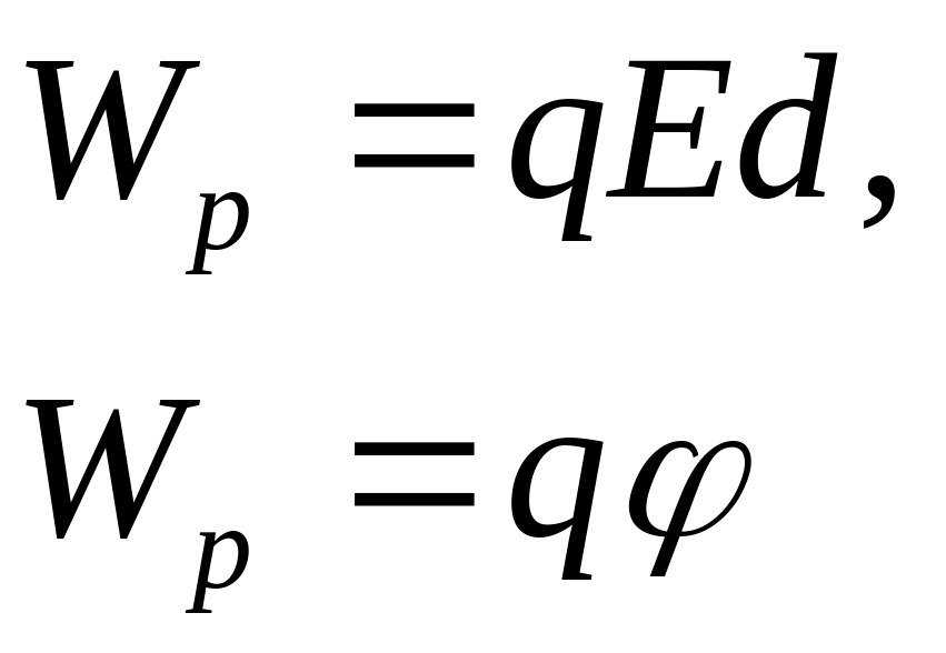 Wp– потенциальная энергия заряда в однородном поле; q – заряд, помещённый в поле; Е – напряжённость однородного поля; d – расстояние от точки, в которой находится заряд, до нулевого уровня потенциальной энергии; – потенциал данной точки поля. |