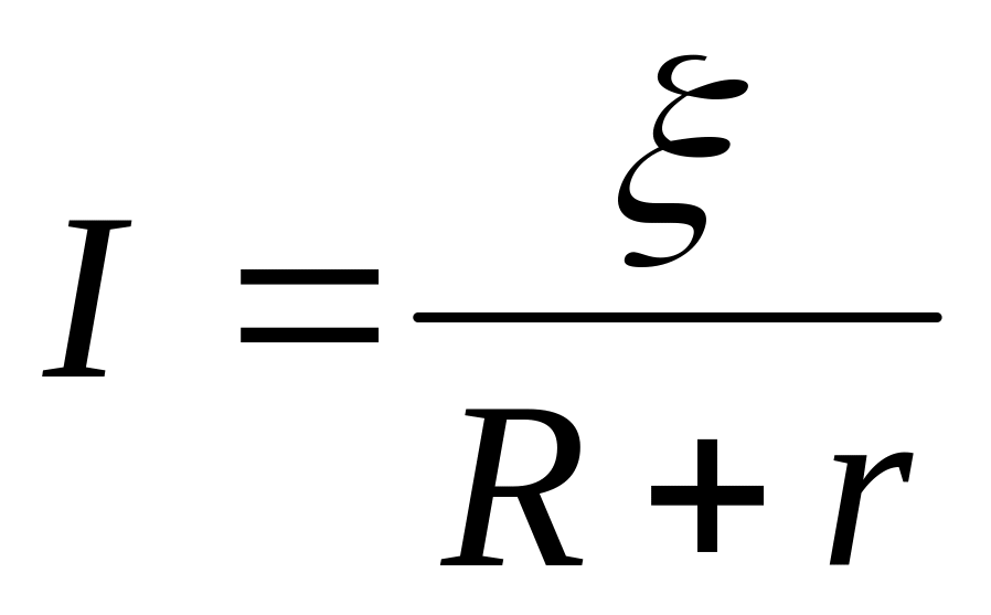 I – сила тока в полной цепи; – электродвижущая сила источника тока; R – сопротивление внешнего участка цепи; r – сопротивление внутреннего участка цепи. |