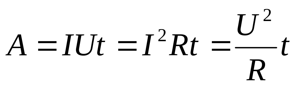 А – работа тока; I – сила тока; U – напряжение; R – сопротивление проводника; t – время. |