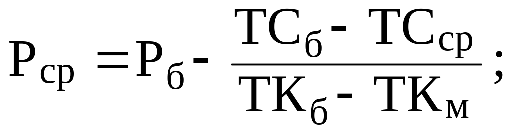 Рср = Рм + [(ТКс – ТКм) / (ТКб – ТКм)]; (14)