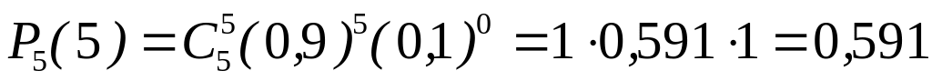 а) По условию задачи вероятность всхожести семян р=0,9; тогда q= 0,1; в данном случае n=5 и т = 4. Подставляя эти данные в формулу Бернулли (1), получим