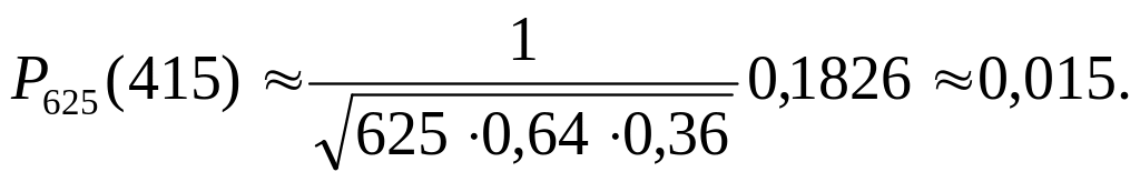 Задача 39. Вероятность появления события А в каждом из 625 испытаний равна 0,64. Найти вероятность того, что событие А в этих испытаниях появится ровно 415 раз.