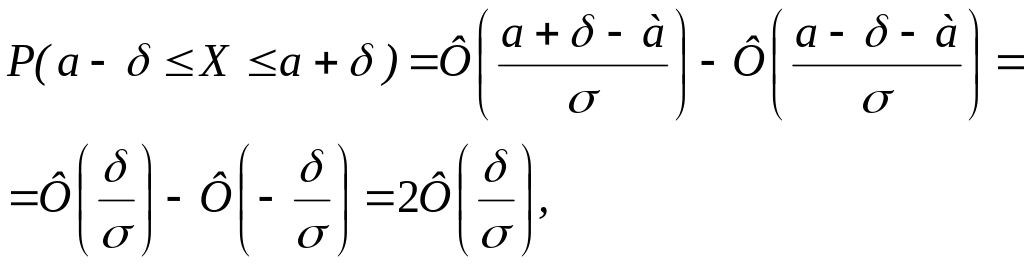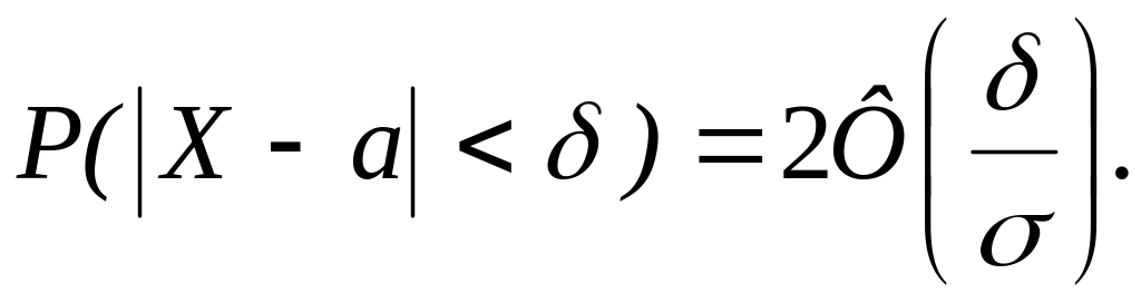 Решение: Если X — длина детали, то по условию задачи эта величина должна быть в интервале (а–δ, а+δ), где а = 40 и δ = 0,6. Подставив в формулу (6) α=а – δ и β= а + δ, получим