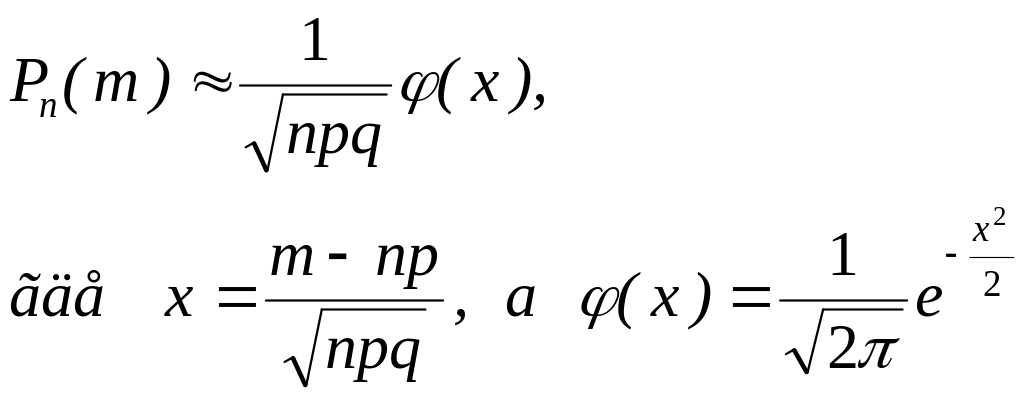 Решение: Если число испытаний п велико, то применение формулы Бернулли приводит к громоздким вычислениям. Использование этой формулы становится практически невозможным. В таких случаях применяют приближенную формулу, которая выражает суть локальной теоремы Лапласа.