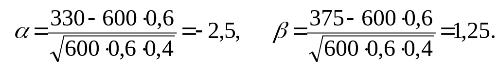 Задача 41. Вероятность попадания в цель при отдельном выстреле равна 0,6. Найти вероятность того, что число попаданий при 600 выстрелах будет заключено в пределах от 330 до 375.