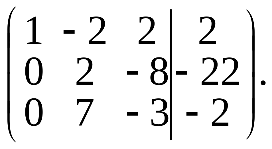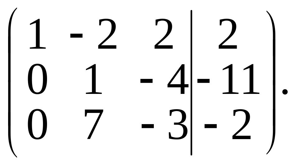 Элементы второй строки умножим на (–7) и результаты прибавим к элементам третьей строки. Получим матрицу,
