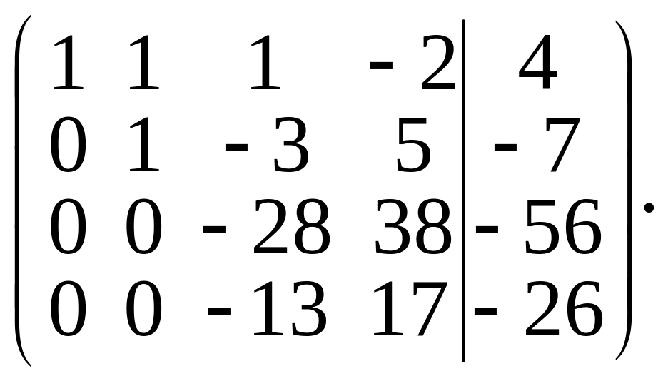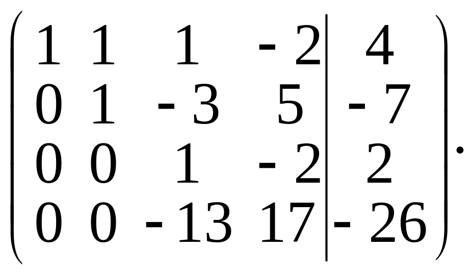 Теперь элементы третьей строки умножим на 13 и результаты прибавим к элементам четвертой строки. Получим матрицу