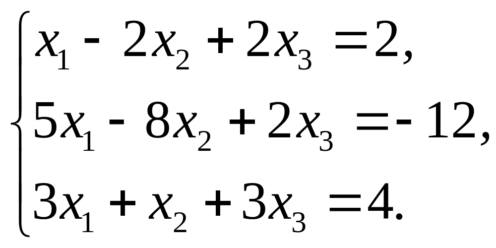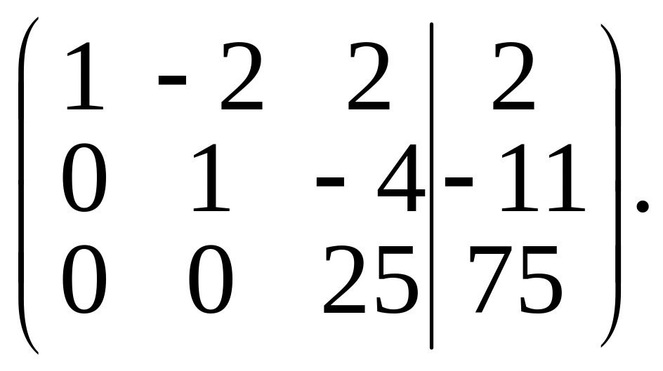 Откуда x3 = 3, х2 = 1 и х1 = -2. Приведение данной системы к ступенчатому виду (3) практически более удобно, если использовать преобразования расширенной матрицы данной системы, т. е. матрицы, составленной из коэффициентов при неизвестных и свободных членов. Для удобства столбец свободных членов этой матрицы отделим вертикальной чертой. Расширенная матрица данной системы имеет вид