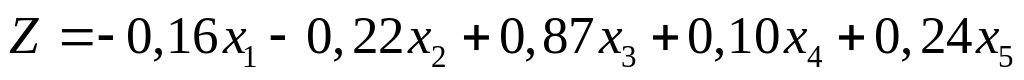 «z-индекс»=1,2x1+1,4x2+3,3x3+0,6x4+0,999x5, где
