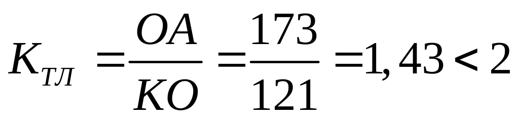 Вывод: структура баланса неудовлетворительна, предприятие неплатежеспособно, отсутствует реальная возможность восстановить платежеспособность в течение ближайших 6 месяцев.