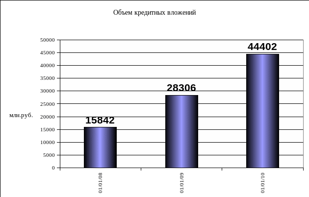 Таблица 7 – Объем кредитных вложений банка за 2008-2010 гг.