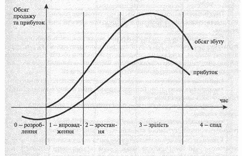 Концепція ЖЦТ пов'язує обсяги збуту товару, прибутки, маркетингові стратегії з особливостями кожного окремого етапу ринкового життя товару.