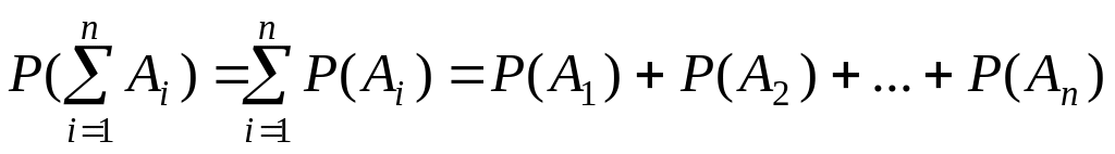 Теорема сложения вероятностей. Вероятность суммы несовместных событий A1, А2, ... , Ап, равна сумме вероятностей этих событий :
