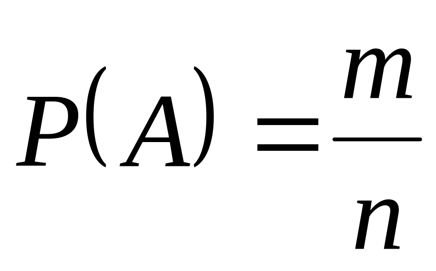 Вероятность события А обозначают Р(А); число исходов, благоприятных событию А, через т; число всех исходов — через п. Тогда по определению: