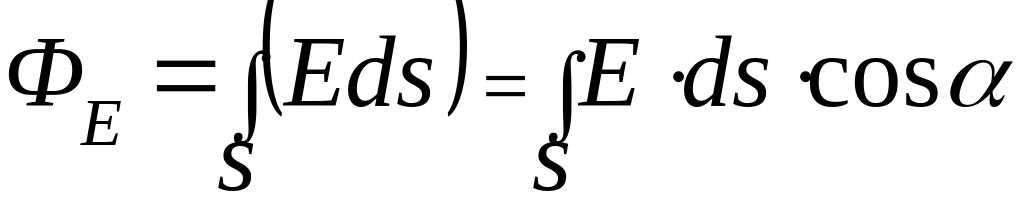 Поток вектора напряженности сквозь элементарную площадку ds зависит от величины вектора напряженности и от ориентации этой площадки по отношению к линиям напряженности.