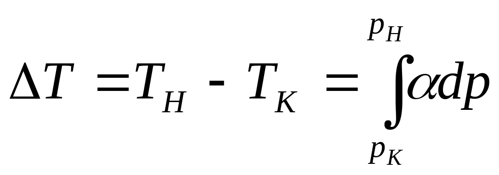 На практике под дифференциальным эффектом обычно понимают изменение температуры (в градусах) при уменьшении давления на 1 бар: αΔр=1ат = ΔТ/Δр, град/бар.