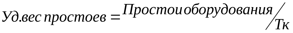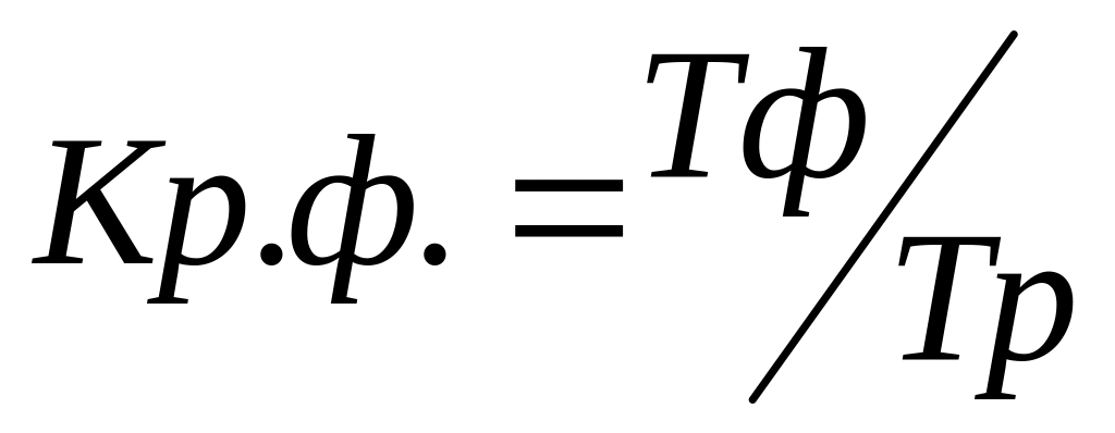 Где: Тф, Тп, Тр, Тк — соответственно фактический, плановый, режимный и календарный фонды рабочего времени оборудования: ПР — простои оборудования.