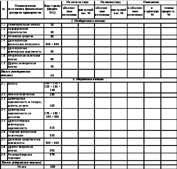 Если доля необоротных активов составляет более 40%, говорят о «тяжелой» структуре активов (это свидетельствует о значительных накладных расходах и высокой чувствительности к изменению выручки), менее 40% - «легкой». Легкая структура свидетельствует о мобильности имущества предприятия. При этом необходимо обратить внимание на то, есть ли в структуре необоротных активов предприятия такая статья, как «Долгосрочные финансовые вложения». Увеличение по этой статье указывает на отвлечение средств из основной производственной деятельности, а уменьшение способствует вовлечению финансовых средств в основную деятельность предприятия и улучшению его финансового состояния. Наличие в составе активов предприятия нематериальных активов косвенно характеризует избранную этим предприятием стратегию как инновационную, так как оно вкладывает средства в патенты, лицензии, другую интеллектуальную собственность. Увеличение доли оборотных активов в структуре активов предприятия может говорить о расширении производства. Наряду с этим, такое изменение в необоротных активах может быть последствием замедления оборачиваемости оборотных средств, вызвавших объективную необходимость в увеличении потребности в росте их массы, что уже является негативной тенденцией. Анализ денежных средств и дебиторской задолженности: Структура активов с высокой долей задолженности и низкой долей денежных средств может свидетельствовать о проблемах, связанных с маркетинговой политикой предприятия, а также о преимущественно неденежном характере расчетов. И наоборот: структура с низкой долей задолженности и высокой долей денежных средств может свидетельствовать о благополучном состоянии расчетов предприятия с покупателями и другими дебиторами. Что касается анализа уровня дебиторской задолженности, то здесь нужно отметить следующее. Если предприятие расширяет свою деятельность, то растет и число покупателей, а, соответственно, и дебиторская задолженность. С другой стороны, предприятие может сократить отгрузку продукции, тогда счета дебиторов уменьшатся. Следовательно, рост дебиторской задолженности не всегда оценивается отрицательно. В этой связи необходимо различать нормальную и просроченную задолженности. Наличие последней создает затруднения, так как предприятие будет чувствовать недостаток финансовых ресурсов для приобретения производственных запасов, выплаты заработной платы и др. Кроме того, замораживание средств приводит к замедлению оборачиваемости капитала. Информация о просроченной дебиторской задолженности содержится в Примечаниях к отчетам согласно п. 13.5 П(С)БУ «Дебиторская задолженность». Большое влияние на финансовое состояние предприятия оказывает состояние производственных запасов. В целях нормального хода производства и сбыта продукции запасы должны быть оптимальными. Накопление больших запасов свидетельствует о спаде активности предприятия, замедлении оборачиваемости оборотного капитала. В то же время недостаток запасов также негативно влияет на финансовое состояние предприятия, так как сокращается производство продукцией, уменьшается сумма прибыли. Иными словами, любой рост стоимости запасов должен сопровождаться также (или большим) ростом оборачиваемости оборотного капитала. После составления данной 