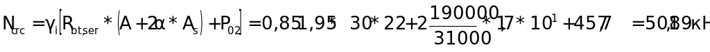 P02= γsp*σ01* Аsp-(σ6+σ8+σ9)*As=0,9*417,28*12,72*100-(17,92+35+64,9)*1,7*100=457,7 кН