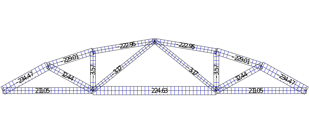 Нижний пояс рассматривается с созданием предварительного напряжения. Данный пояс рассчитывается по двум группам предельных состояний. Исходя из анализа данных таблицы максимальные расчетные усилия установлены в элементе 2.