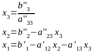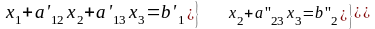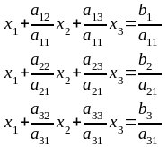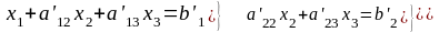 Разделим все члены первого уравнения системы (1) на a11, затем все члены второго уравнения – на a21, все члены третьего уравнения – на a31. Если a21 или a31 равен нулю, то соответствующее уравнение входит в новую систему без изменений.