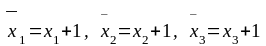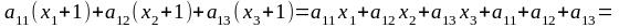 При замене правых частей системы уравнений соответствующими строчными суммами получается система уравнений такая, что если x1, x2, x3 есть решение первоначальной системы, то x1+1, x2+1, x3+1 будет решение новой системы.
