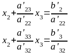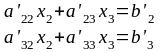 Предположим, что в системе (2) хотя бы один из коэффициентов a’22 или a’32 отличен от нуля. Пусть таким является, например, коэффициент a’22. разделим почленно второе уравнение системы (2) на a’22, третье – на a’32. затем из третьего полученного уравнения вычтем второе полученное уравнение. В результате этих преобразований система примет вид: