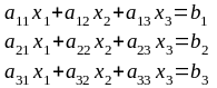В общем виде система трех линейных уравнений с тремя неизвестными имеет вид: