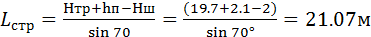 Lтр=Lстр∙cos(α)= 21,07∙cos(66) =7.535 м.