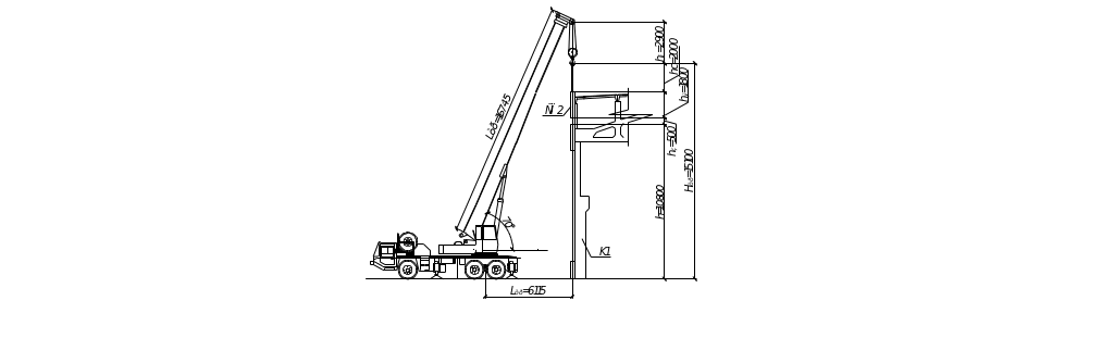 Для стреловых кранов без гуська требуемый вылет определяется из условия недопустимости касания стрелой крана монтируемой конструкции:
