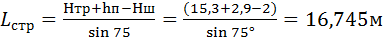 Lтр=Lстр∙cos75°=16,745∙cos75°=6,115 м.