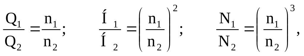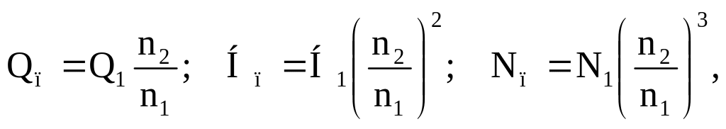 Тогда пересчитанные значения расхода, напора и мощности определяются по следующим формулам: