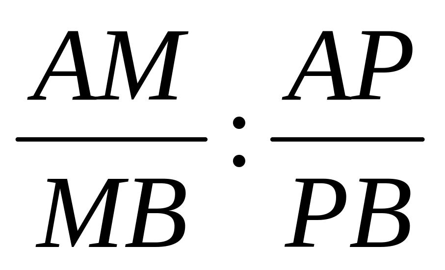 Проще всего убедиться в этом, взяв на прямой систему координат с началом в точке А и единичным отрезком АВ. Пусть точка М имеет координату m (m ≠ 0, m ≠ 1), тогда координата х точки Р находится из линейного уравнения.