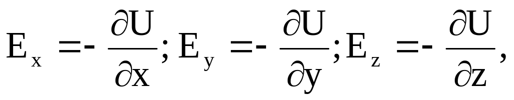 вместо величин Ех; Еу; Еz их выражения через потенциал: