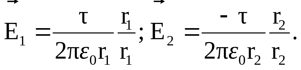 Цилиндры имеют одинаковый по величине, но противоположный по знаку заряд, линейная плотность которого 1=-2==10-8Кл/м.