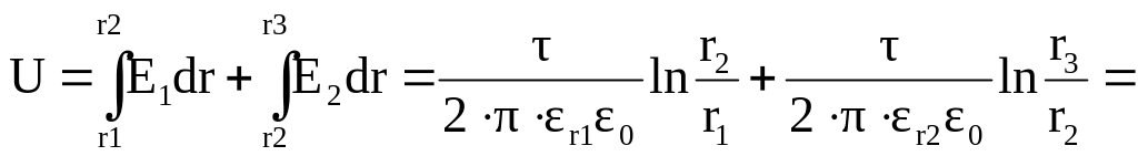 E2 = ·R3/(3·0·r2); U2 = ·R3/(3·0·r).