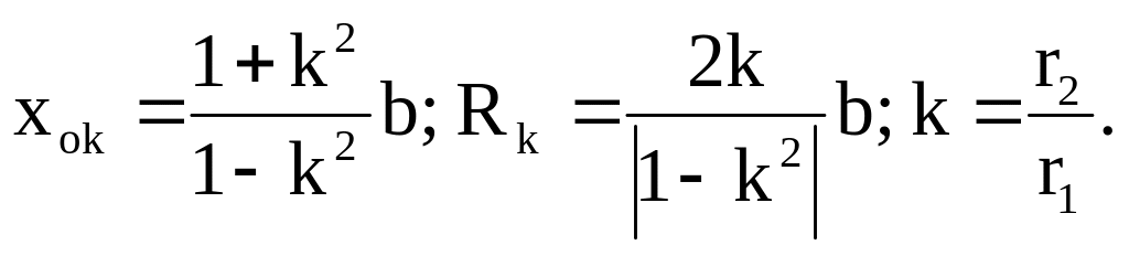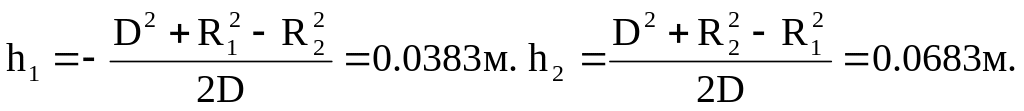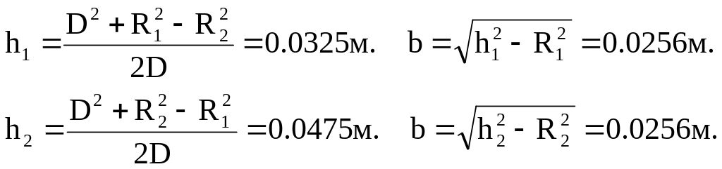 r2// = (R2 + b - h2) = 0.0181м; r1// = 2b - r2// = 0.0331м.