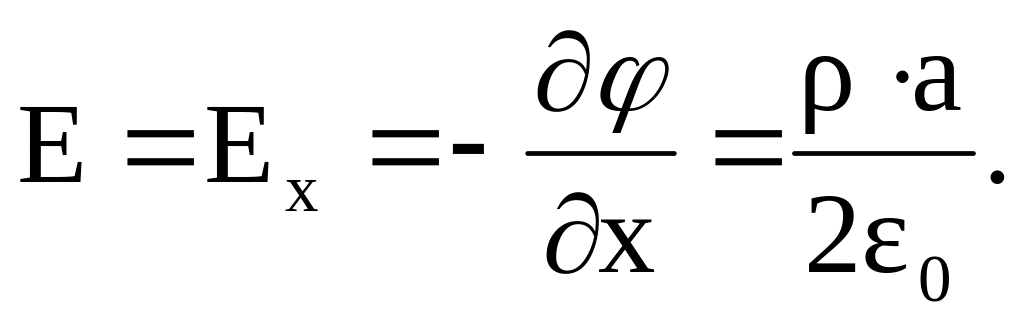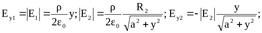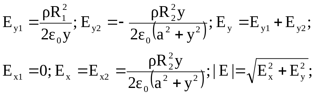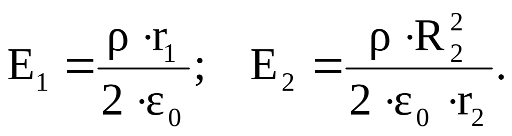 Отметим, что если бы объемная плотность заряда оставалась постоянной, то напряженность поля и потенциалы поля в соответствующих подобластях определялись бы следующими выражениями: