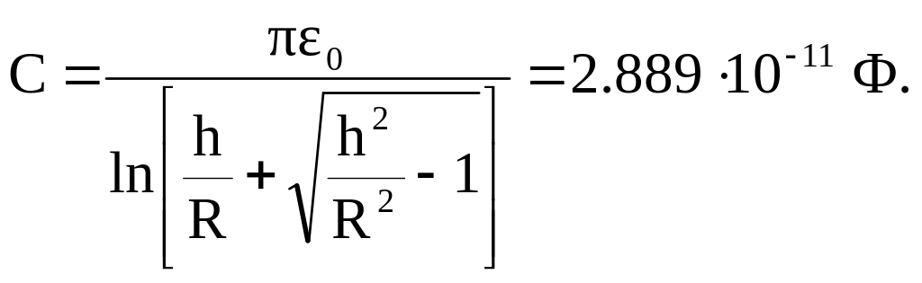 Емкость системы проводов на единицу их длины определяется с помощью следующей формулы:
