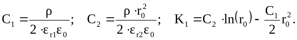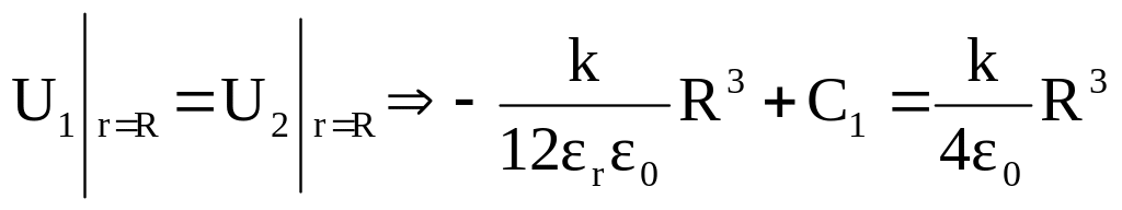 Постоянная С1 в этом случае определяется также из условия равенства потенциалов U1 и U2 на поверхности шара