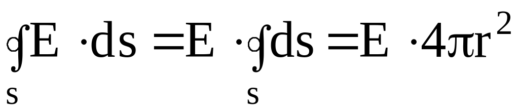 Поскольку поле точечного заряда характеризуется сферической симметрией, то, если в качестве поверхности интегрирования взять поверхность сферы с центром в точке, где расположен заряд (в нашем случае это начало системы координат), то в любой точке на поверхности этой сферы напряженность поля будет иметь одно и то же значение. Направление же вектора будет совпадать с направлением радиуса, то есть перпендикулярно к поверхности сферы. В связи с этим, интеграл по этой поверхности, составленный по теореме Гаусса, можно преобразовать следующим образом: