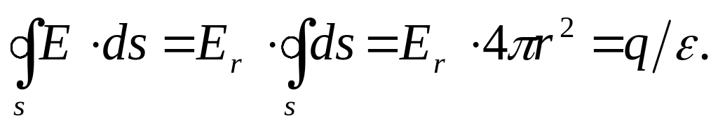 Поскольку данный интеграл (согласно теореме Гаусса) равен отношению заряда, помещенного внутри сферы, к диэлектрической проницаемости среды, то напряженность поля будет определяться соотношением