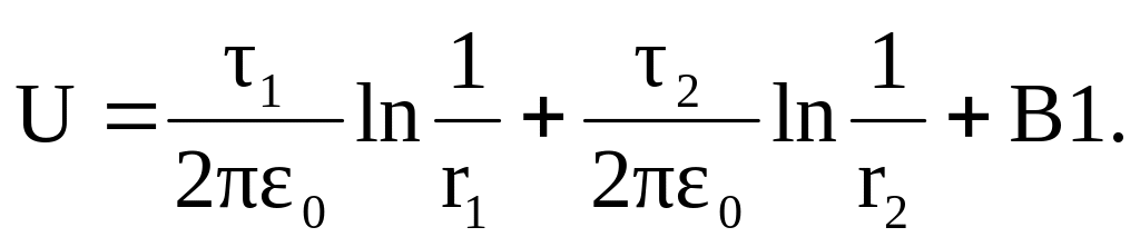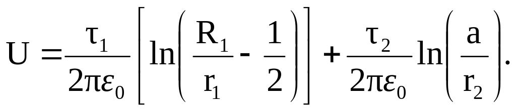 Здесь r1/ и r2/ - расстояние от электрических осей первого и второго цилиндров соответственно до точки m, а r1// и r2// - расстояние от электрических осей этих цилиндров до точки n.